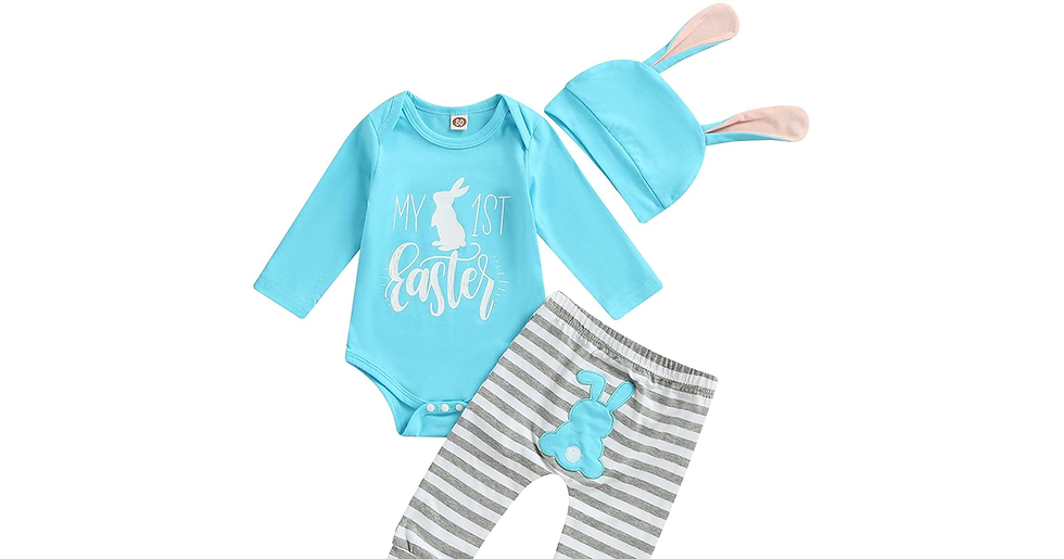 XIXIMAON Newborn Baby Boy My First Easter 3Pcs Outfits Long Sleeve Lettered Romp