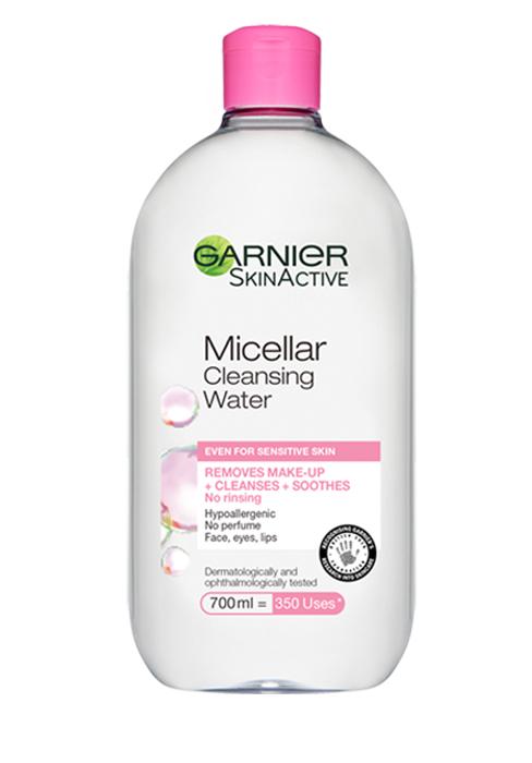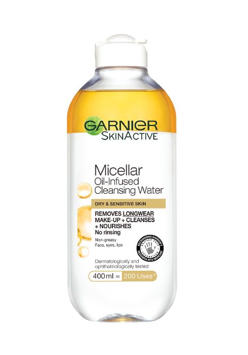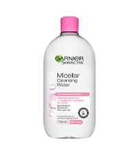 - Wet eco pad with Garnier micellar water to remove all types of make-up and cleanse skin